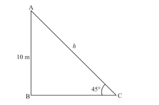 $\Rightarrow \quad \sin 45^{\circ}=\frac{10}{h}$