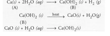 reacts with water to give calcium hydroxide ‘B’ again.