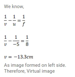 An extended object is placed at a distance of $5.0 \mathrm{~cm}$ from a convex lens of focal length $8 \mathrm{~cm}$ (a) dram a ray diagram (to the scale) to locate the image and from this, measure the distance of the image from the lens. (b) Find the position of the image from the lens formula and see how close the drawing is to the correct result.