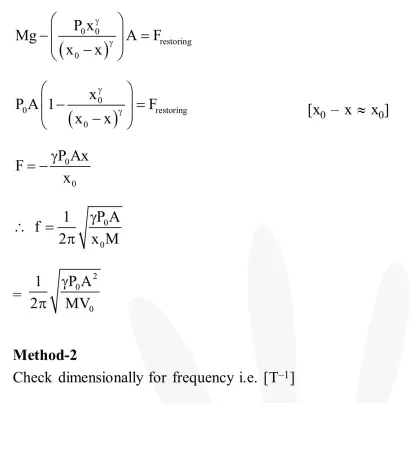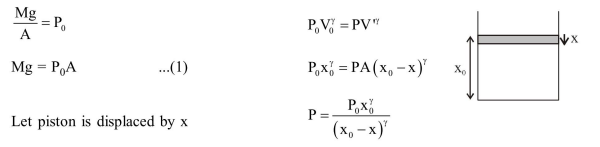 An ideal gas enclosed in a vertical cylindrical container supports a freely moving piston of mass M. The piston and the cylinder have equal cross sectional area $A$. When the piston is in equilibrium, the volume of the gas is $\mathrm{V}_{0}$ and its pressure is $\mathrm{P}_{0}$. The piston is slightly displaced from the equilibrium position and released. Assuming that the system is completely isolated from its surrounding, the piston executes a simple harmonic motion with frequency.