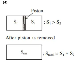 An ideal gas in a cylinder is separated by a piston in such a way that the entropy of one part is $S_{1}$ and that of the other part is $S_{2}$. Given that $\mathrm{S}_{1}>\mathrm{S}_{2}$. If the piston is removed then the total entropy of the system will be: