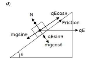 $F=m g \sin \theta-(\mu N+q E \cos \theta)$