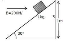 An inclined plane making an angle of $30^{\circ}$ with horizontal is placed in a uniform horizontal electric field $200 \frac{N}{C}$ as shown in the figure. A body of mass $1 \mathrm{~kg}$ and charge $5 \mathrm{mC}$ is allowed to slide down from rest at a height of $1 \mathrm{~m}$. If the coefficient of frication is $0.2$, find the time taken by the body to reach the bottom.