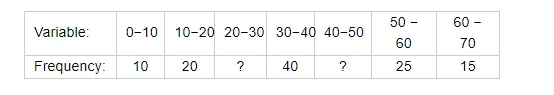 You are given that the median value is 35 and the sum of all the frequencies is 170. Using the median formula, fill up the missing frequencies.