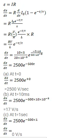 An inductor-coil of inductance $20 \mathrm{mH}$ having resistance $10 \Omega$ is joined to an ideal battery of emf $5.0 \mathrm{~V}$. Find the rate of change of the induced emf at