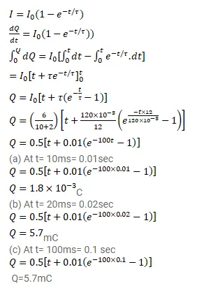 An inductor-coil of resistance $10 \Omega$ and inductance $120 \mathrm{mH}$ is connected across a battery of emf $6 \mathrm{~V}$ and internal resistance $2 \Omega$. Find the charge which flows through the inductor in