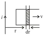 $\mathrm{i}=\frac{\mathrm{e}}{\mathrm{R}}=\frac{\mu_{0}}{2 \pi} \cdot \frac{\mathrm{iv} \ell}{\mathrm{Rr}}$