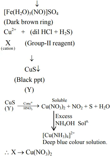 An inorganic Compound ' $\mathrm{X}$ ' on treatment with concentrated $\mathrm{H}_{2} \mathrm{SO}_{4}$ produces brown fumes and gives dark brown ring with $\mathrm{FeSO}_{4}$ in presence of concentrated $\mathrm{H}_{2} \mathrm{SO}_{4}$. Also Compound ' $\mathrm{X}$ ' gives precipitate ' $\mathrm{Y}^{\prime}$, when its solution in dilute $\mathrm{HCl}$ is treated with $\mathrm{H}_{2} \mathrm{~S}$ gas. The precipitate ' $\mathrm{Y}$ ' on treatment with concentrated $\mathrm{HNO}_{3}$ followed by excess of $\mathrm{NH}_{4} \mathrm{OH}$ further gives deep blue coloured solution, Compound ' $\mathrm{X}$ ' is: