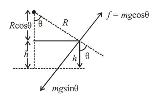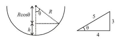 $h=R-R \cos \theta=R-R\left(\frac{4}{5}\right)=\frac{R}{5}$