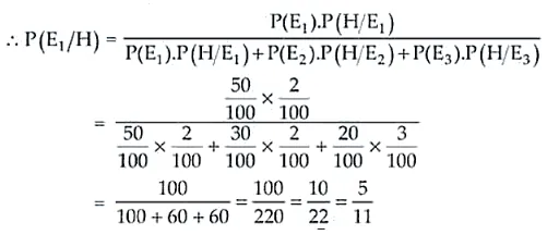 P(H/E1) = 2/100, P(H/E2) = 2/100 and P(H/E3) = 3/100