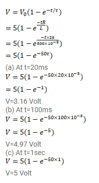 An LR circuit contains an inductor of $500 \mathrm{mH}$, a resistor of $25.0 \Omega$ and an emf of $5.00 \mathrm{~V}$ in series. Find the potential difference across the resistor atÂ