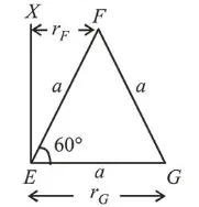 $\Rightarrow I=m\left(r_{E}\right)^{2}+m\left(r_{F}\right)^{2}+m\left(r_{G}\right)^{2}$