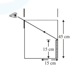 An observer can see through a small hole on the side of a jar (radius $15 \mathrm{~cm}$ ) at a point at height of $15 \mathrm{~cm}$ from the bottom (see figure). The hole is at a height of $45 \mathrm{~cm}$. When the jar is filled with a liquid up to a height of $30 \mathrm{~cm}$ the same observer can see the edge at the bottom of the jar. If the refractive index of the liquid $\mathrm{N} / 100$, where $\mathrm{N}$ is an integer, the value of $\mathrm{N}$ is__________.