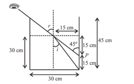 From figure, $\sin i=\frac{15}{\sqrt{15^{2}+30^{2}}}$ and $\sin r=\sin 45^{\circ}$