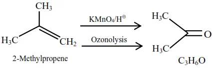 An organic compound ' $\mathrm{A}^{\prime} \mathrm{C}_{4} \mathrm{H}_{8}$ on treatment with $\mathrm{KMnO}_{4} / \mathrm{H}^{+}$yields compound ' $\mathrm{B}$ ' $\mathrm{C}_{3} \mathrm{H}_{6} \mathrm{O}$.