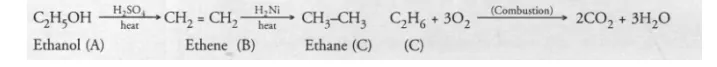 compound C. One mole of compound C on combustion forms two moles of CO2 and three moles of H2O. Identify the compounds A, B and C and write