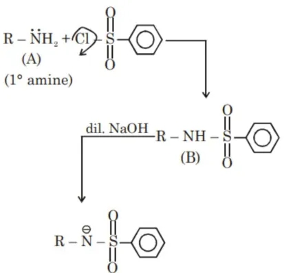 Hinsberg reagent (Benzene sulphonyl chloride) gives reaction product with $1^{\circ}$ amine and it is soluble in dil. $\mathrm{NaOH}$.