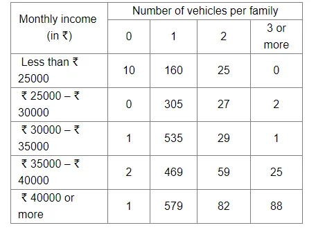 (iv) Number of families earning ₹ 35000 – ₹ 40000 per month and owning 2 or more vehicles = 59 + 25 = 84