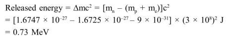 Assume that a neutron breaks into a proton and an electron. The energy released during this process is: