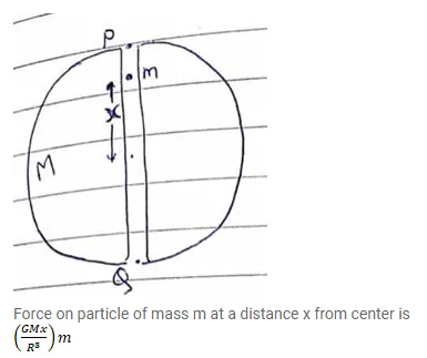 Assume that a tunnel is dug across the earth (radius=R) passing through its center. Find the time a particle takes to cover the length of the tunnel if