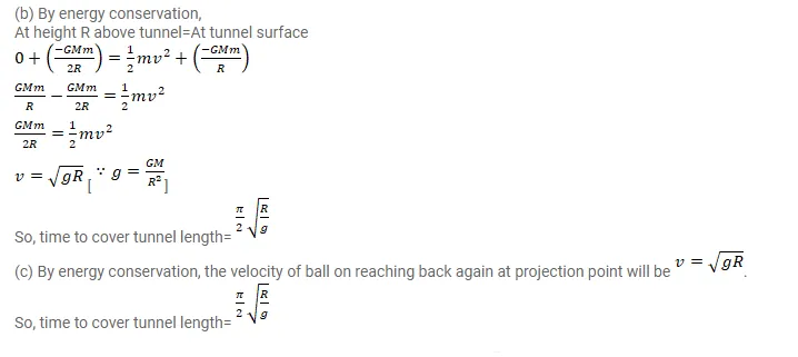 (c) it is thrown vertically upward along the length of tunnel with a speed of $\sqrt{g R}$.