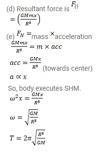 (e) Show that the motion of the particle in the tunnel is simple harmonic and find the time period.
