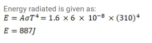 Assume that the total surface area of a human body is $1.6 \mathrm{~cm}^{2}$ and that it radiates like an ideal radiator. Calculate the amount of energy radiated per second by the body if the body temperature is $37^{\circ} \mathrm{C}$. Stefan constant $\sigma$ is $6.0 \times 10^{-8} \mathrm{~W} / \mathrm{m}^{2}-\mathrm{K}^{4}$.