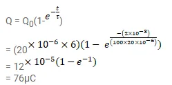 At $20 \mu \mathrm{F}$ capacitor is joined to a battery of emf $6.0 \mathrm{~V}$ through a resistance of $100 \Omega$. Find the charge on the capacitor $2.0$ ms after the connections are made.