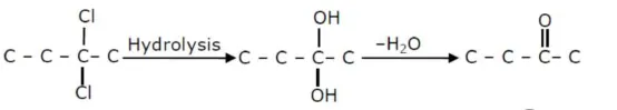 $\mathrm{B}$ reacts with Hydroxyl amine but does not give Tollen's test. Identify $\mathrm{A}$ and $\mathrm{B}$.