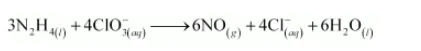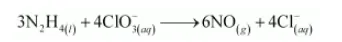 (b) $\mathrm{N}_{2} \mathrm{H}_{4(())}+\mathrm{ClO}_{3(a q)}^{-} \longrightarrow \mathrm{NO}_{(g)}+\mathrm{Cl}_{(g)}^{-}$