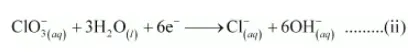 $\mathrm{P}_{4}(\mathrm{~s})+8 \mathrm{H}_{2} \mathrm{O} \rightarrow 4 \mathrm{HPO}_{2}^{-}(\mathrm{aq})+12 \mathrm{H}^{+}+8 \mathrm{e}^{-} \quad \ldots$ (i)