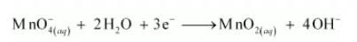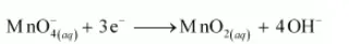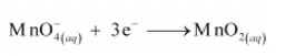In the reduction half reaction, the oxidation state of Mn has reduced from +7 to +4. Thus, 3 electrons are added to the LHS of the reaction.