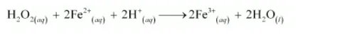 (c) $\mathrm{H}_{2} \mathrm{O}_{2}$ (aq) $+\mathrm{Fe}^{2+}$ (aq) $\rightarrow \mathrm{Fe}^{3+}$ (aq) $+\mathrm{H}_{2} \mathrm{O}$ (I) (in acidic solution)