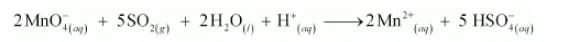 (b) $\mathrm{MnO}_{4}^{-}$(aq) $+\mathrm{SO}_{2}(\mathrm{~g}) \rightarrow \mathrm{Mn}^{2+}(\mathrm{aq})+\mathrm{HSO}_{4}^{-}$(aq) (in acidic solution)