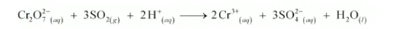 (d) $\mathrm{Cr}_{2} \mathrm{O}_{7}^{2-}+\mathrm{SO}_{2}(\mathrm{~g}) \rightarrow \mathrm{Cr}^{3+}(\mathrm{aq})+\mathrm{SO}_{4}^{2-}(\mathrm{aq})($ in acidic solution $)$