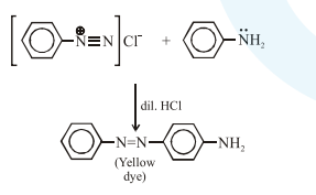 Benzene diazonium chloride on reaction with aniline in the presence of dilute hydrochloric acid gives :