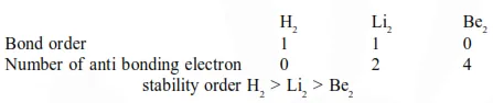 Question: Bond order normally gives idea of stability of a molecular species. All the molecules viz. $\mathrm{H}_{2}$, $\mathrm{Li}_{2}$ and $\mathrm{B}_{2}$ have the same bond order yet they are not equally stable. Their stability order is: