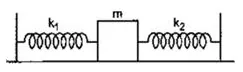 Both the springs shown in figure are unstretched. If the block is displaced by a distance $x$ and released, what will be the initial acceleration?