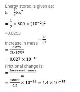 By what fraction does the mass of a spring change when it is compressed by $1 \mathrm{~cm}$ ? The mass of the spring is $200 \mathrm{~g}$ at its natural length and the spring constant is $500 \mathrm{~N} / \mathrm{m}$.