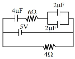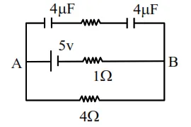 $\therefore \quad \mathrm{V}_{\mathrm{AB}}=\frac{5}{4+1} \times 4=4 \mathrm{v}$
