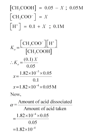 Let the amount of acetic acid dissociated in this case be X. As we have done in the first case, the concentrations of various species involved in the reaction are: