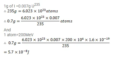 Question: Calculate the energy released by $1 \mathrm{~g}$ of natural uranium assuming $200 \mathrm{MeV}$ is released in each fission event and that the fissionable isotope ${ }^{235} \mathrm{U}$ has an abundance of $0.7 \%$ by weight in natural uranium.