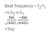Calculate the frequency of beats produced in air when two sources of sound are activated, one emitting a wavelength of 32 $\mathrm{cm}$ and the other of $32.2 \mathrm{~cm}$. The speed of sound in air is $350 \mathrm{~m} \mathrm{~s}^{-1}$.