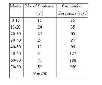 Median $=l+\left\{\frac{\frac{N}{2}-F}{f}\right\} \times h$