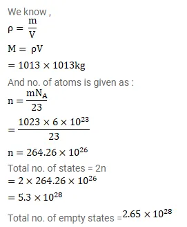 Calculate the number of states per cubic meter of sodium in $3 \mathrm{~s}$ band. The density of sodium is $1013 \mathrm{~kg} / \mathrm{cm}^{3}$, How many of them are empty?