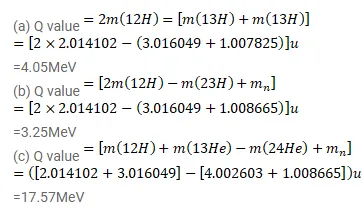 (c) ${ }_{1}^{2} \mathrm{H}+{ }_{1}^{3} \mathrm{H} \rightarrow{ }_{2}^{4} \mathrm{He}+n$