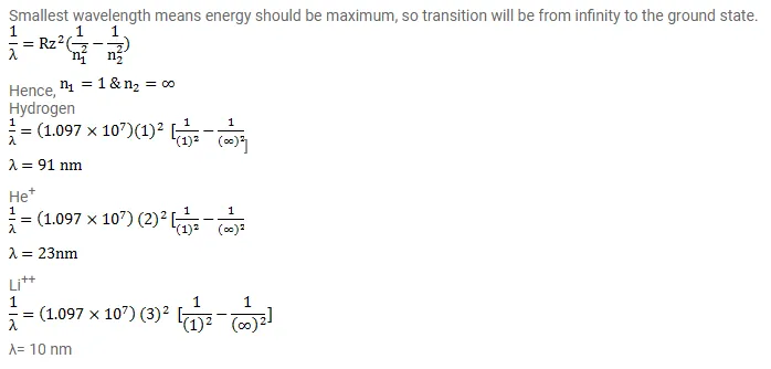 Calculate the smallest wavelength of radiation that may be emitted by hydrogen