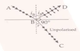 When the angle of incidence is equal to the Brewster’s angle such that the transmitted light is polarized and reflected light is plane-polarized. Following is the equation: