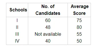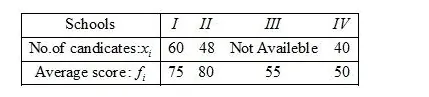 Candidate of four schools appear in a mathematics test. The data were as follows: