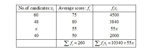 We know that mean, $\bar{X}=\frac{\sum f_{i} x_{i}}{\sum f_{i}}$